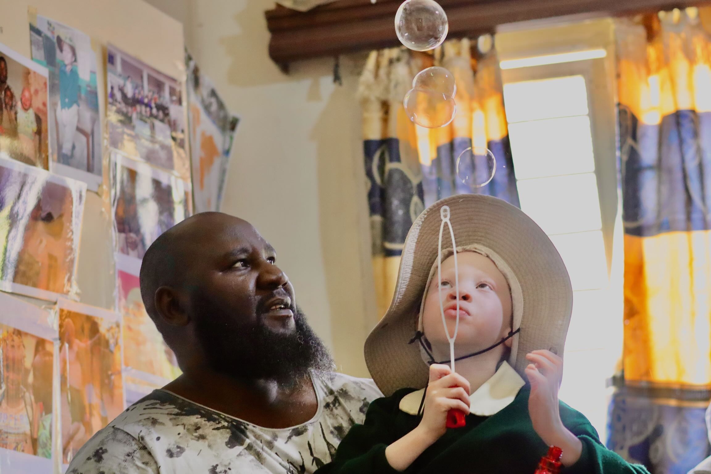 Many of the children receiving care at Peacemakers were abandoned by their own families and seen as a burden instead of a blessing because of their albinism. One small boy, Shadrack, who sits in the front row with the younger children, stands out to me. I hold his hand. His father drove him for nearly 13 hours to place him in the care of Peacemakers. The child is three years old. Reverend Martha has taken him into her home to care for him.