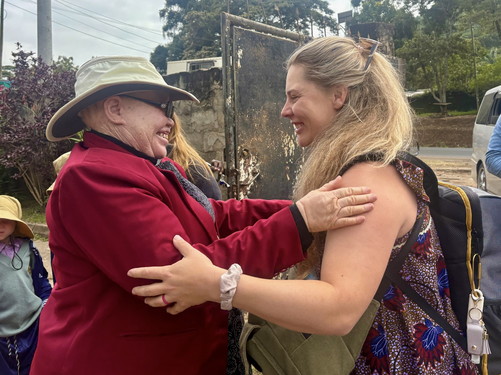 We could see the children through the gate, in their dark green uniforms and kaki hats, sheltering their skin from the harshness of the African sun —a necessary item for a child facing albinism. The children gathered with curiosity, while we waited with eagerness on the other side of the gate, anxious for it to open and the welcome to begin. The gate slowly rolled open. Our Lahash team, from Kenya and Portland, rushed to embrace our friends. For a couple of Lahash members, this is their first visit to Peacemakers for Albinism and Community, in Tanzania.