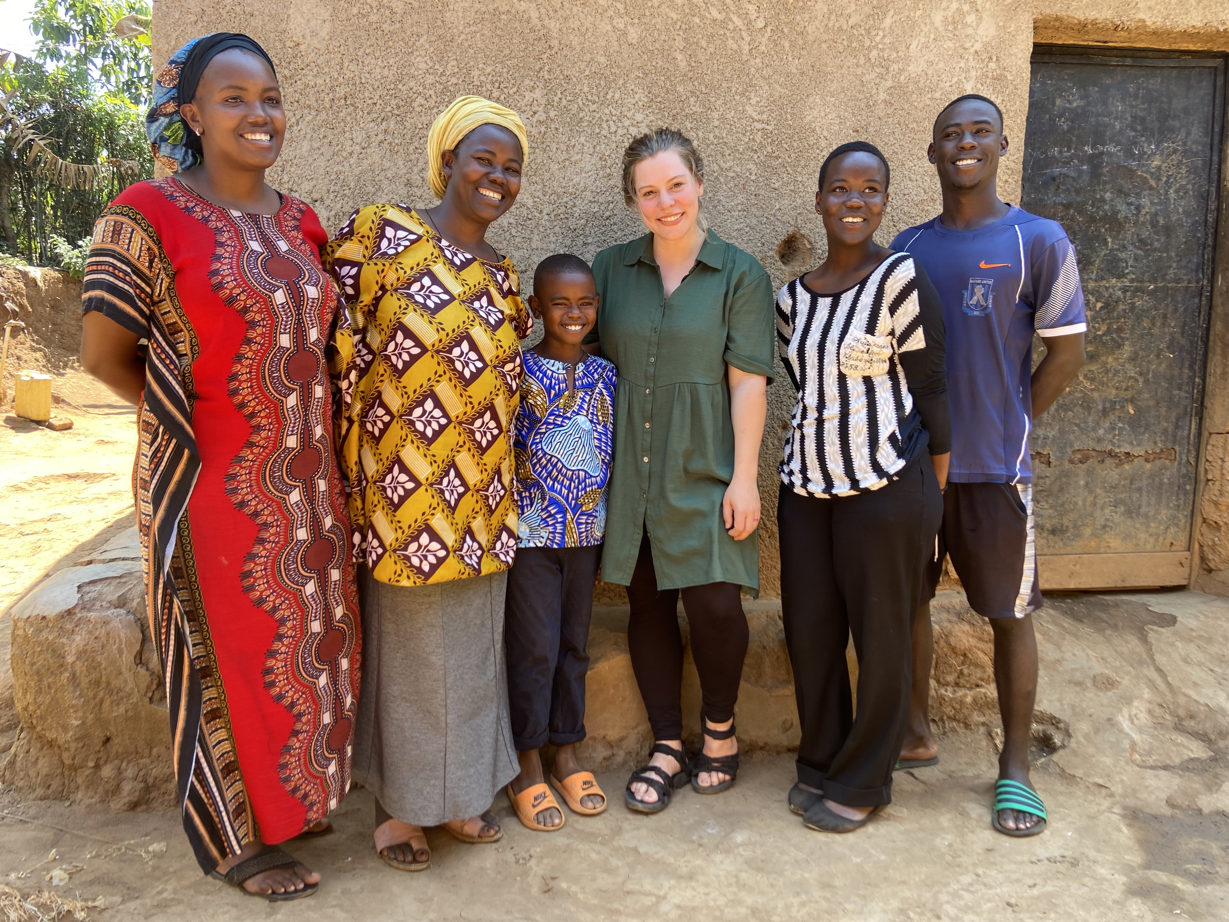 We stand in a circle, greeting one another. Bruno's eldest sister and his brother, Heriett and Bright, greet us. They welcome us into their humble home, one that's been in the family for a long time. My eyes take a moment to adjust to the dark after standing in the bright sunshine. The room has a single open window, and light streams in. I sit next to Bruno on a little couch. During our visit, his sister, Natasha, joins our gathering.